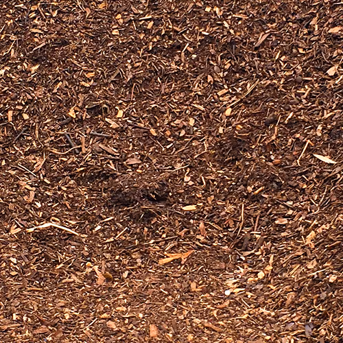 Hardwood mulch dyed deep rich black.